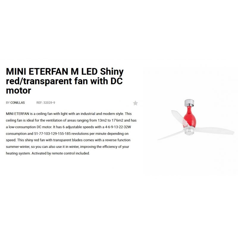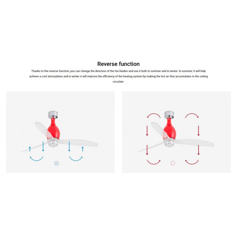 Lustra cu Ventilator si telecomanda MINI ETERFAN M rosu/transparent