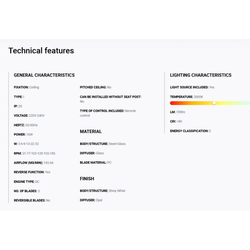 Informatii produs: | lustra cu ventilator si telecomanda, cu functie reversibila iarna-vara, 6 trepte de viteza reglabile3-6-9-13-22-32Watt si 51-77-103-129-155-185rpm. |