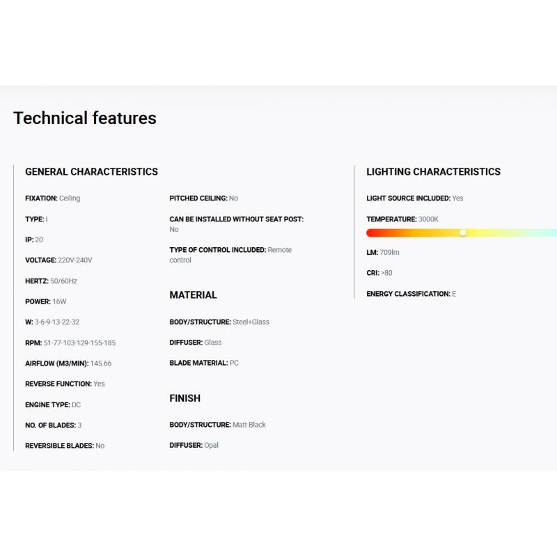 Informatii produs: | lustra cu ventilator si telecomanda, cu functie reversibila iarna-vara, 6 trepte de viteza reglabile3-6-9-13-22-32Watt si 51-77-103-129-155-185rpm. |