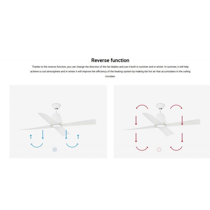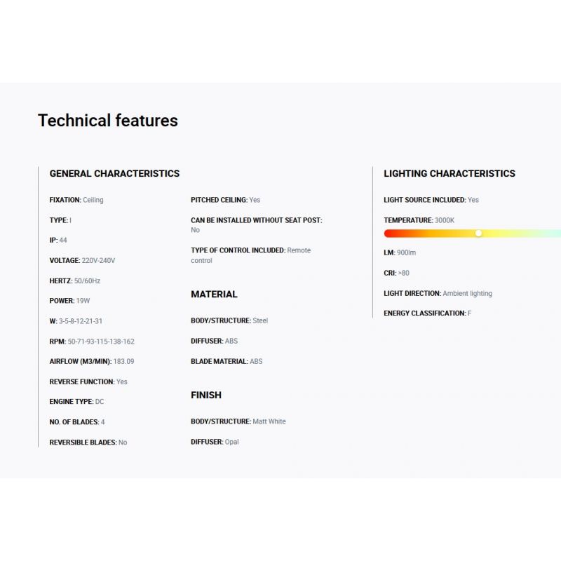 Informatii produs: | lustra cu ventilator si telecomanda pentru exterior cu protectie IP44 cu functie reversibila iarna-vara, 6 trepte de viteza reglabile 3-5-8-12-21-31Watt si 0-71-93-115-138-162 rpm, activat prin telecomand? inclus? |