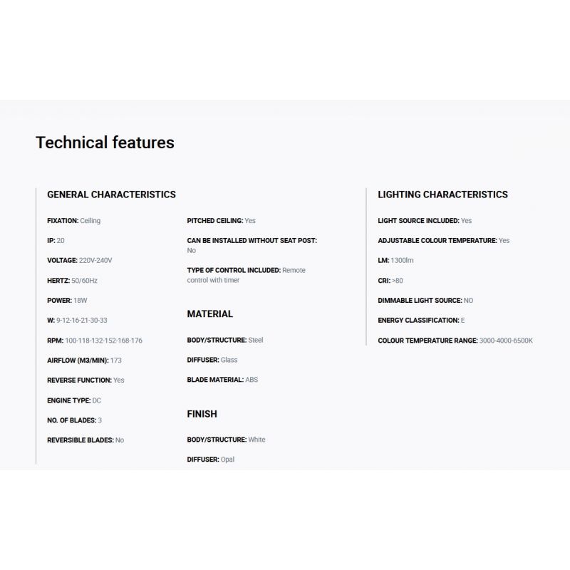 Informatii produs: | Ventilator cu telecomanda, cu functie reversibila iarna-vara, 6 trepte de viteza reglabile 9-12-16-21-30-33Watt si 100-118-132-152-168-176rpm, activat prin telecomand? inclus? |