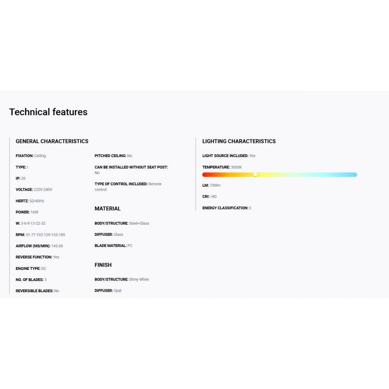 Informatii produs: | lustra cu ventilator si telecomanda, cu functie reversibila iarna-vara, 6 trepte de viteza reglabile3-6-9-13-22-32Watt si 51-77-103-129-155-185rpm. |