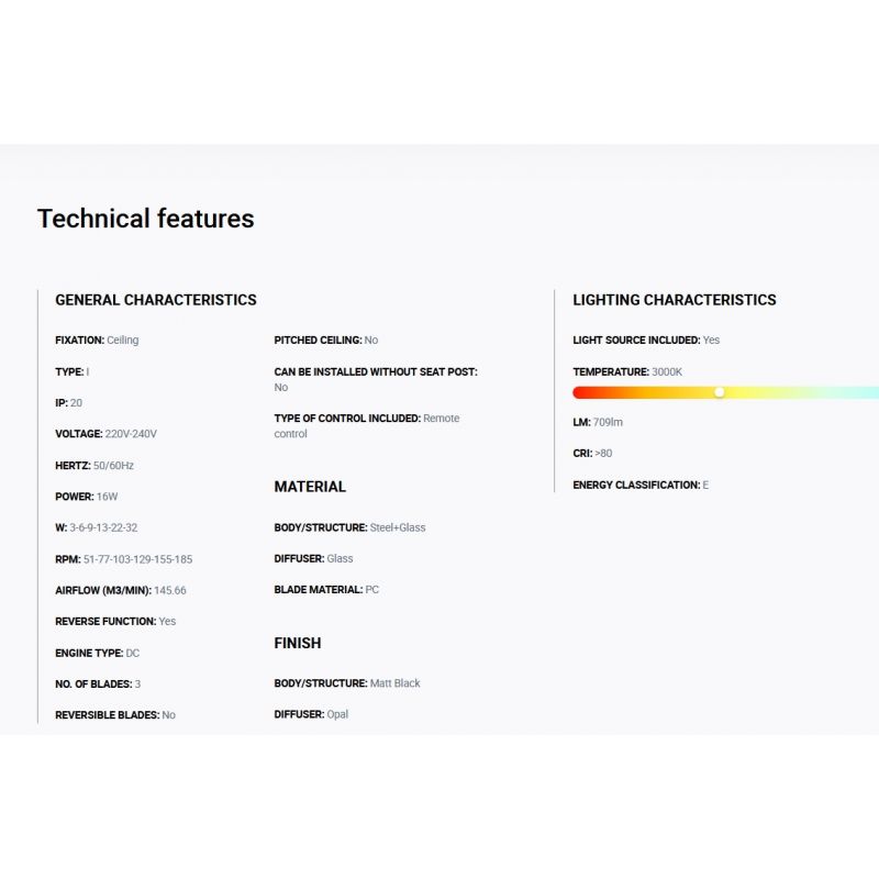 Materiale | metal, sticla, palate PC negru mat, difuzor opal |
