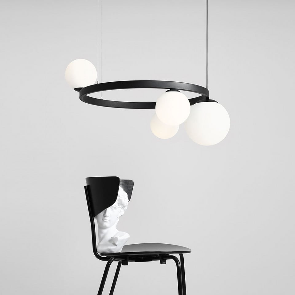 Lustra neagra/alb din sticla cu 4 becuri Garda Aldex