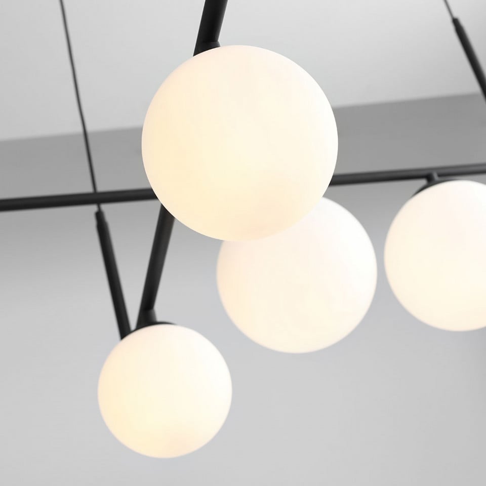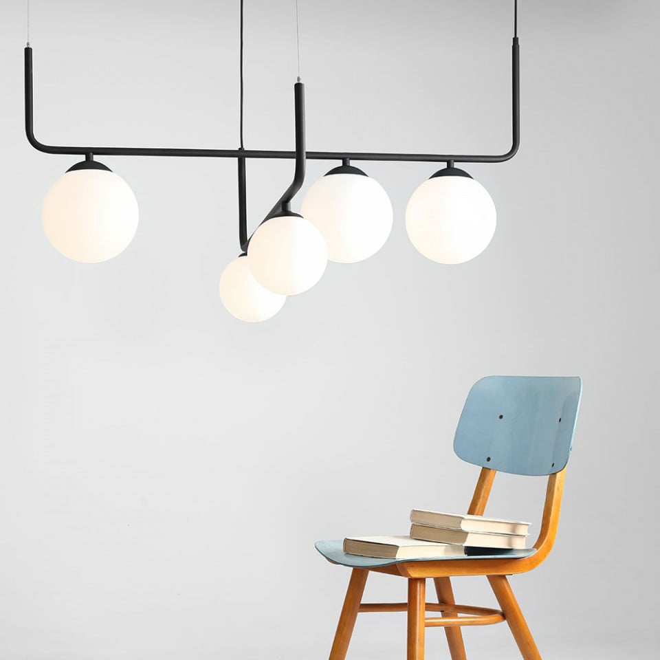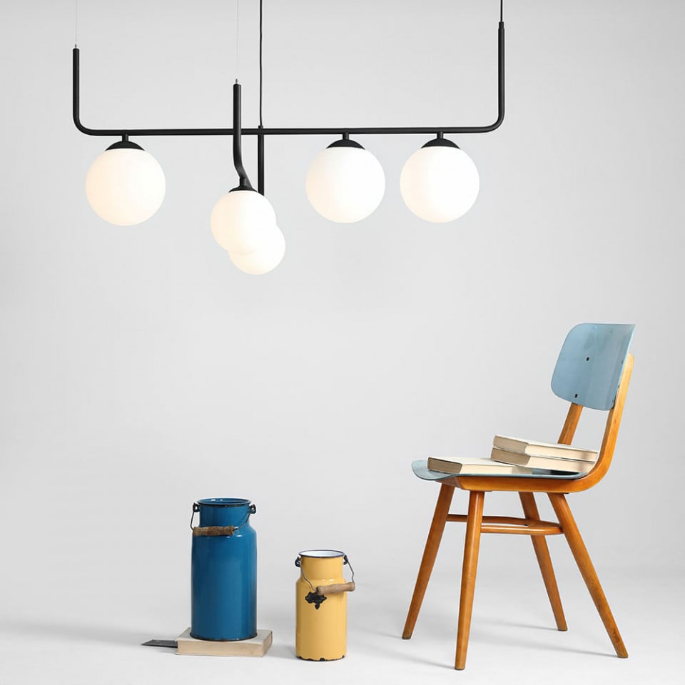 Interpretarea actuala a unui candelabru care va ilumina o camera intreaga. Lampa Artemida este formata din doua brate atarnate de fire cu sfere laptoase de diferite dimensiuni: 14cm si 16cm. Acest pandantiv modern lumineaza perfect si uniform spatiul de deasupra mesei de luat masa, in zona centrala a livingului sau deasupra insulei din bucatarie. Are doua circuite de lumina, ceea ce va permite sa aprindeti independent becurile din fiecare brat.