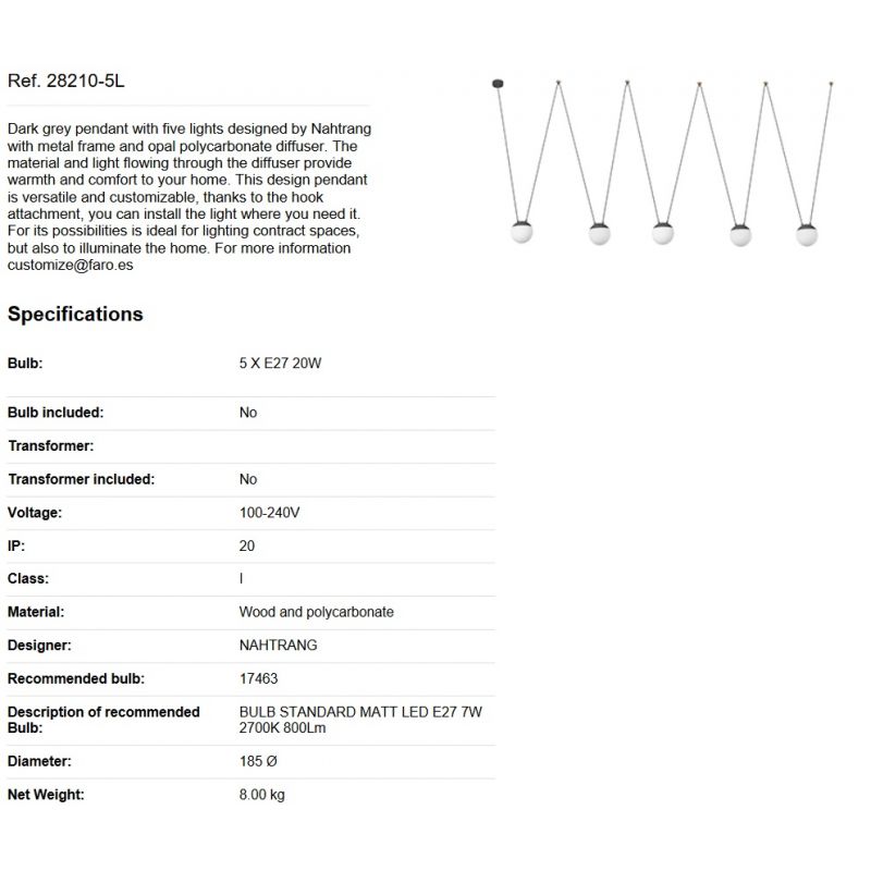 Putere | 5x 20Watt bec E27 exclus din pret [bec recomandat cod:17463] |