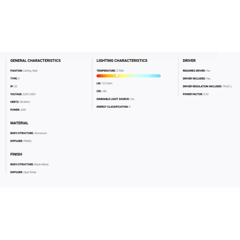 Materiale | aluminiu finisaj negru, difuzor PMMA alb opal |