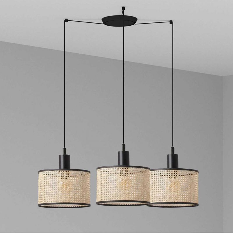 Lustra suspendata cu 3 pendule design natural MAMBO ø21cm negru/ratan