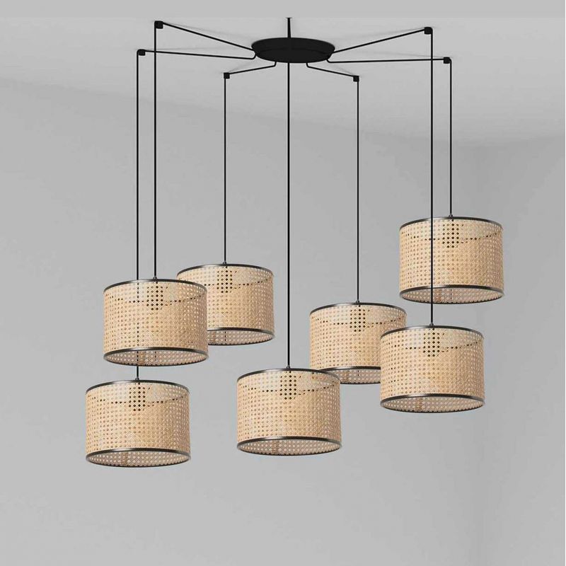 Lustra suspendata cu 7 pendule design natural MAMBO ø32cm negru/ratan