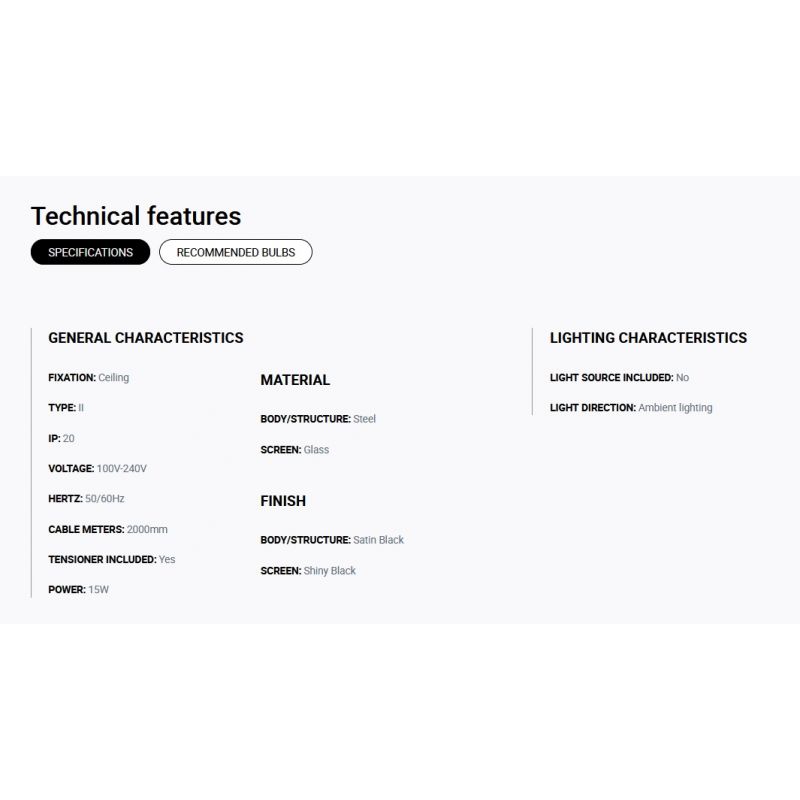 Materiale | structura metal negru satin, abajur sticla negru lucios |