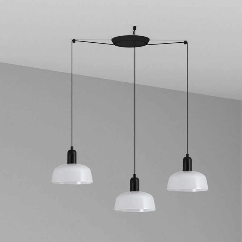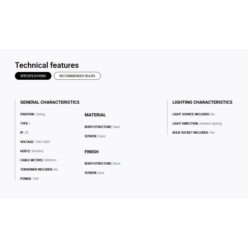 Materiale | structura metal negru satin, abajur sticla alb opal |