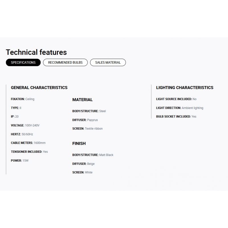 Materiale | otel negru mat, abajur panglica textila, difuzor papyrus, finisaj alb |