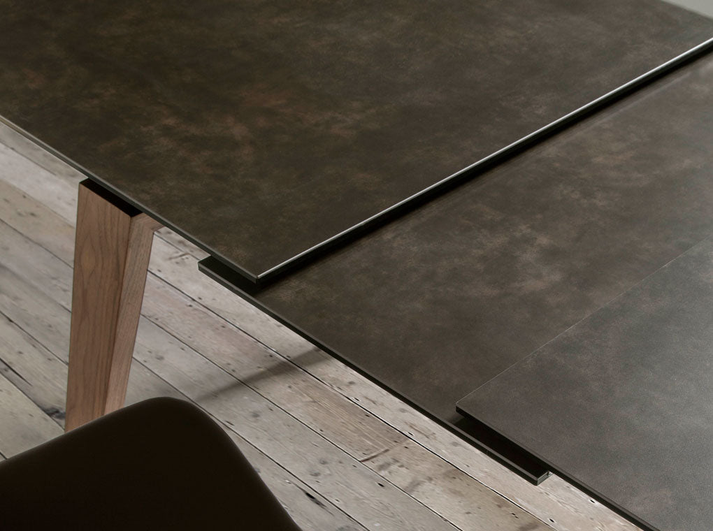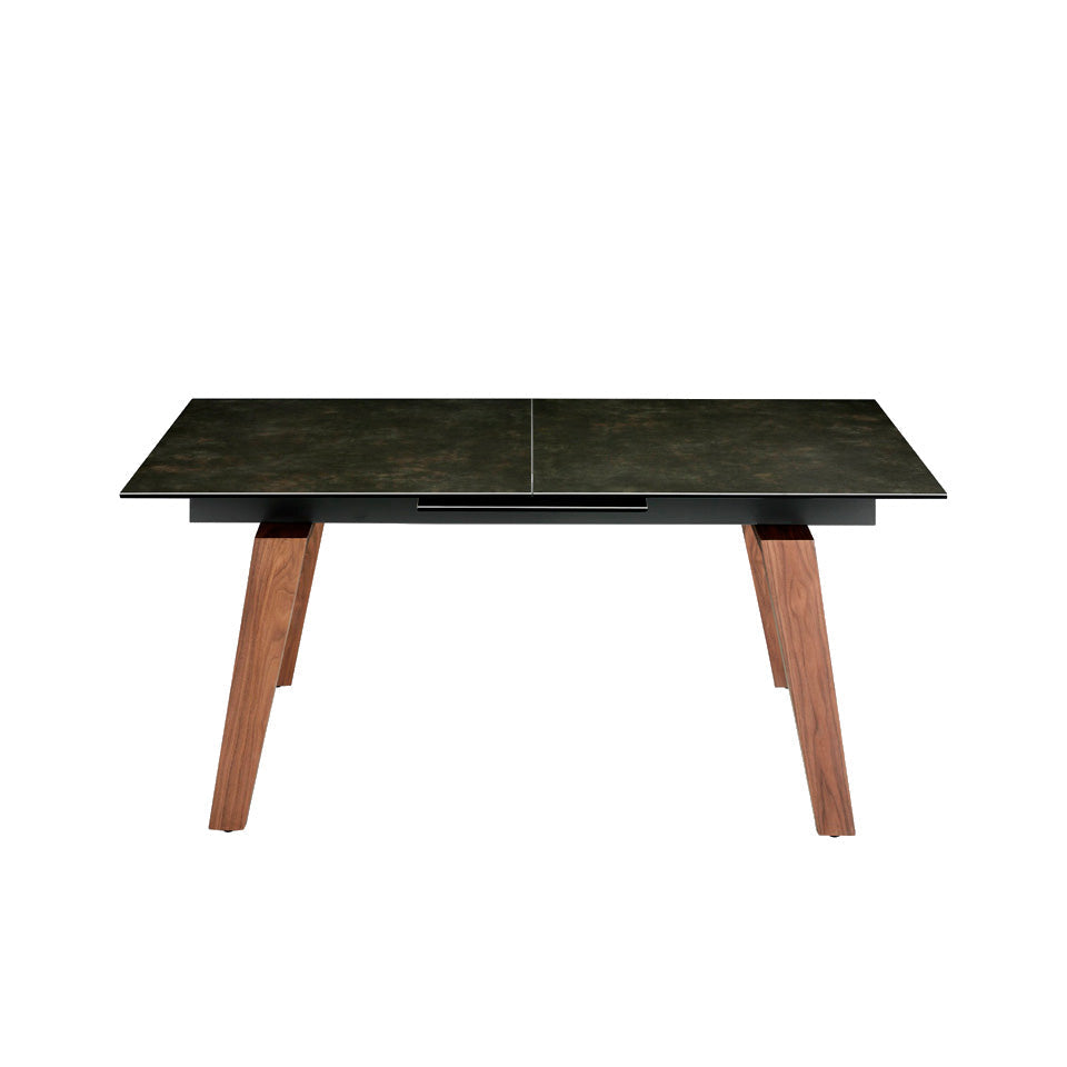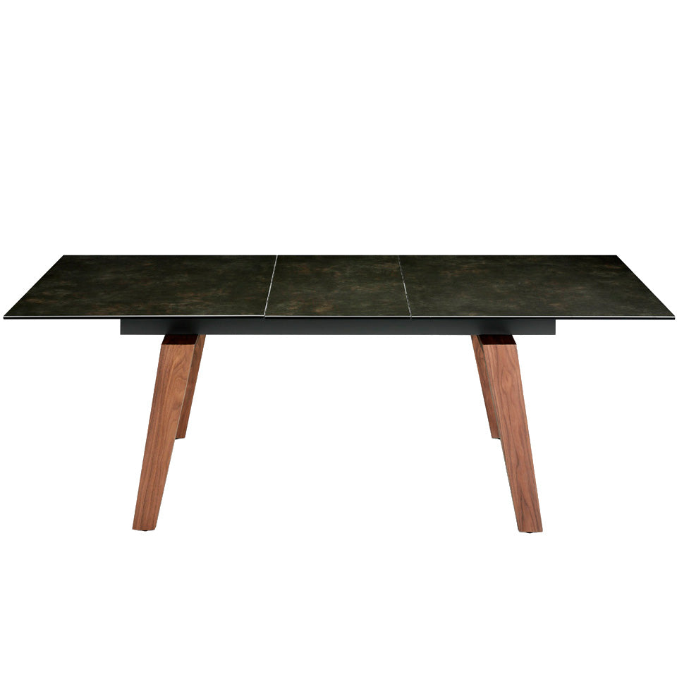 Aceasta masa extensibila de dining din marmura neagra este perfecta pentru a adauga un stil modern si functional in camera de dining. Cu un blat rectangular din portelan intunecat si picioare din lemn furnir natural de nuc, aceasta masa este durabila si ofera un confort deosebit. Cu extensiile sale de 50 cm, puteti adapta masa in functie de numarul de invitati, astfel incat sa va bucurati de evenimente sociale placute.