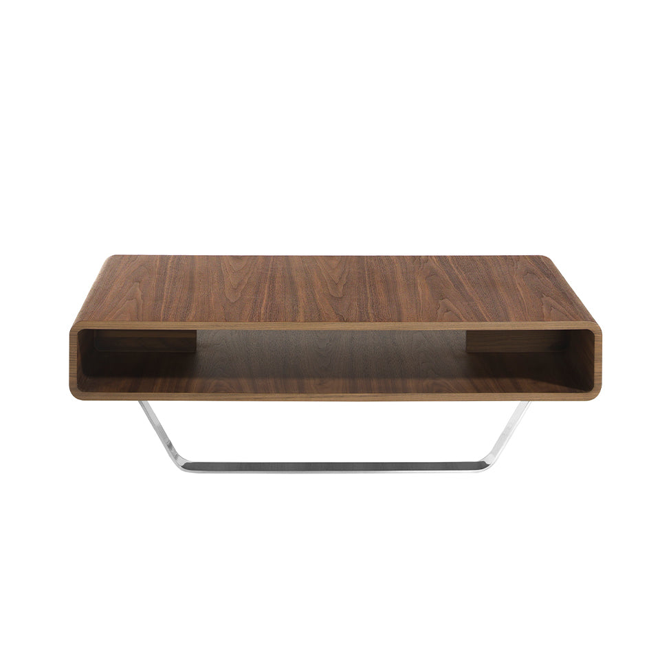 Aceasta masa de cafea din lemn de nuc furniruit natural cu un design modern si spatiu central de depozitare este perfecta pentru a oferi un aspect diferit si calduros in sufrageria dvs. Picioarele din otel inoxidabil cromat de 22 microni ii confera un stil versatil si functional, care se poate combina cu cele mai recente tendinte in decorare. Realizata din cele mai bune materiale, aceasta masa de cafea garanteaza durabilitate si functionalitate. Cu dimensiunile sale, este ideala pentru a imbraca sufrageria dvs. si pentru a fi un element practic in viata dvs. de zi cu zi.