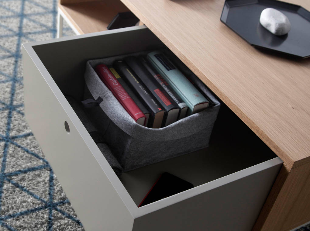 Masa de cafea rectangulara din lemn de stejar si otel alb este o piesa de mobilier moderna si eleganta, perfecta pentru a adauga un strop de stil si eleganta oricarui spatiu. Cu un design liniar si o structura robusta din furnir de stejar, aceasta masa de cafea ofera un spatiu mare de depozitare cu un sertar cu sistem de tragere si blocare. Picioarele din otel vopsit alb completeaza aspectul modern si avangardist al acestei mese de cafea. Toate mesele noastre sunt realizate din materiale de cea mai buna calitate, garantand mobilier durabil si functional. In catalogul nostru veti gasi o varietate de dimensiuni, forme si designuri pentru a se potrivi cu orice spatiu din casa dvs.
