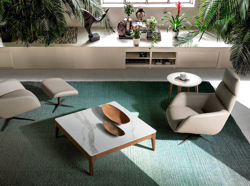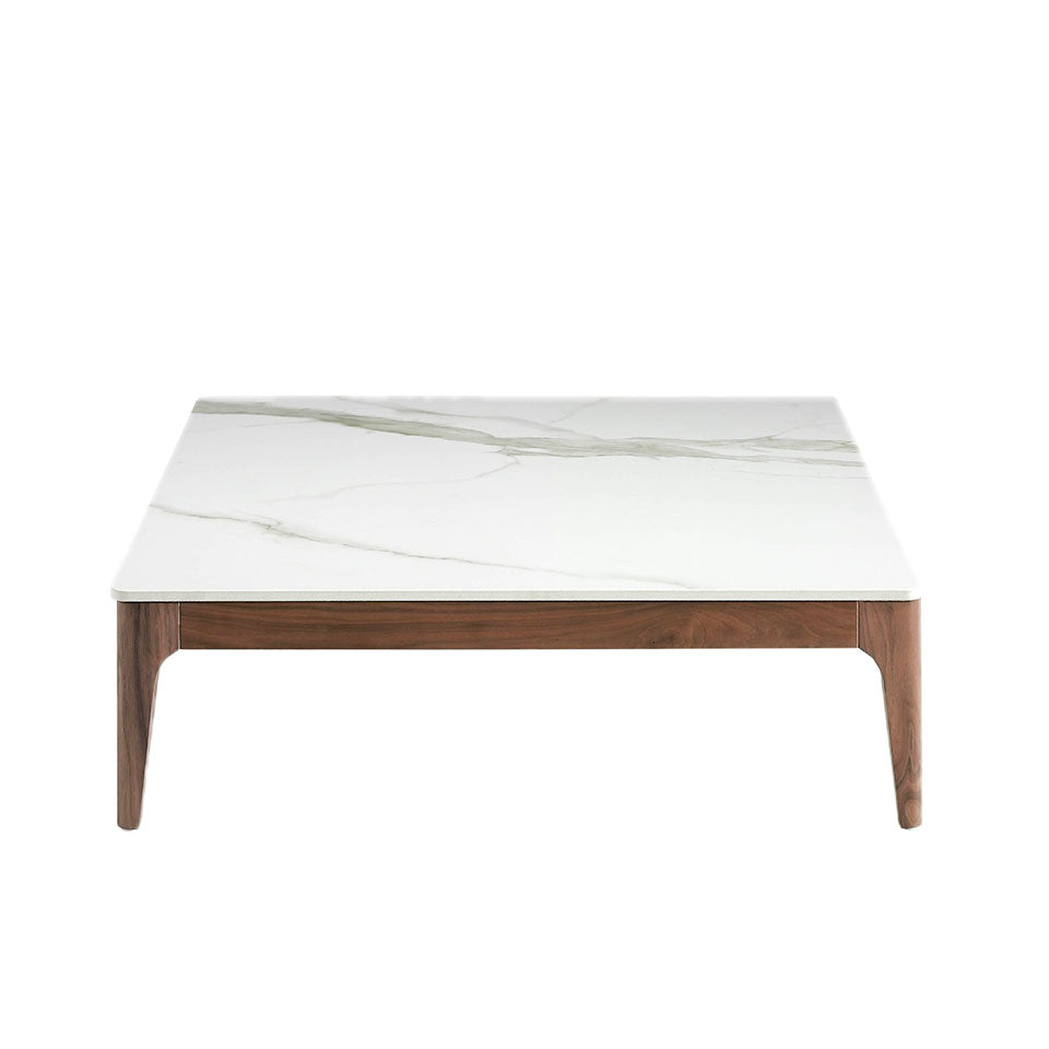 Masa de Cafea din Sticla Imitatie Marmura cu Baza din Lemn de Nuc Angel Cerda