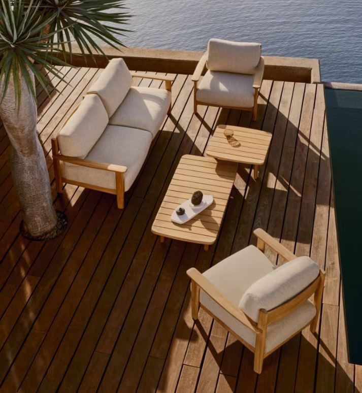 Turqueta este un design exclusivist realizat de Made Studio pentru Kave Home. Formele sale contemporane si planurile izbitor de plate transmit confera seninatate si confort spatiilor dvs. de exterior. O colectie realizata din lemn masiv de tec, perfecta pentru relaxare.