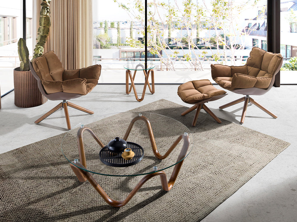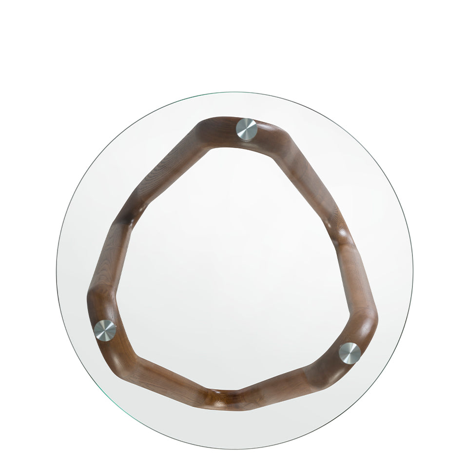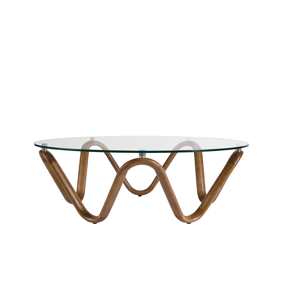 Masa de Cafea Rotunda din Sticla Temperata si Nuc Angel Cerda
