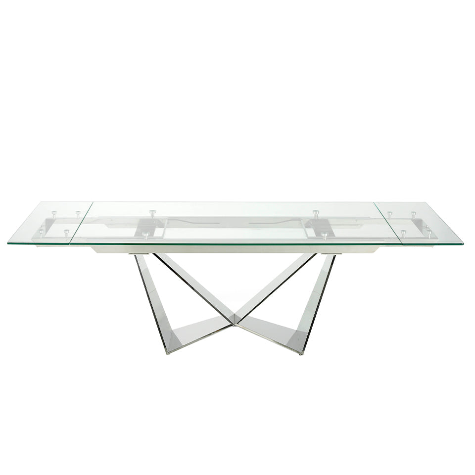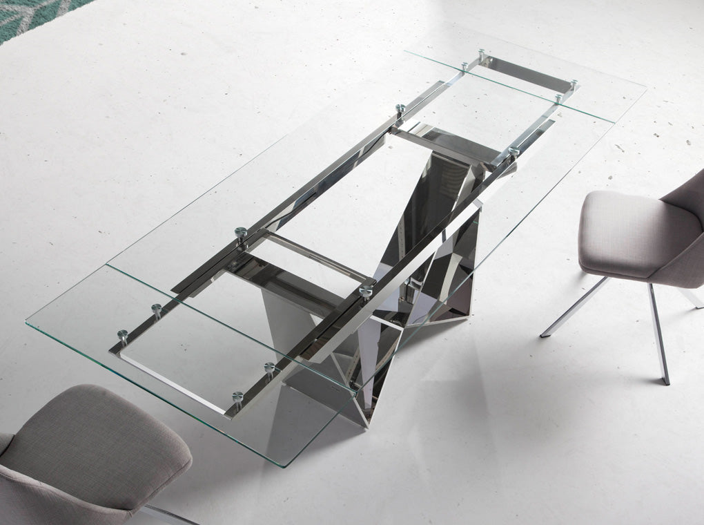Masa de Dining din Sticla cu Extensii si Picioroare din Otel Inoxidabil Angel Cerda