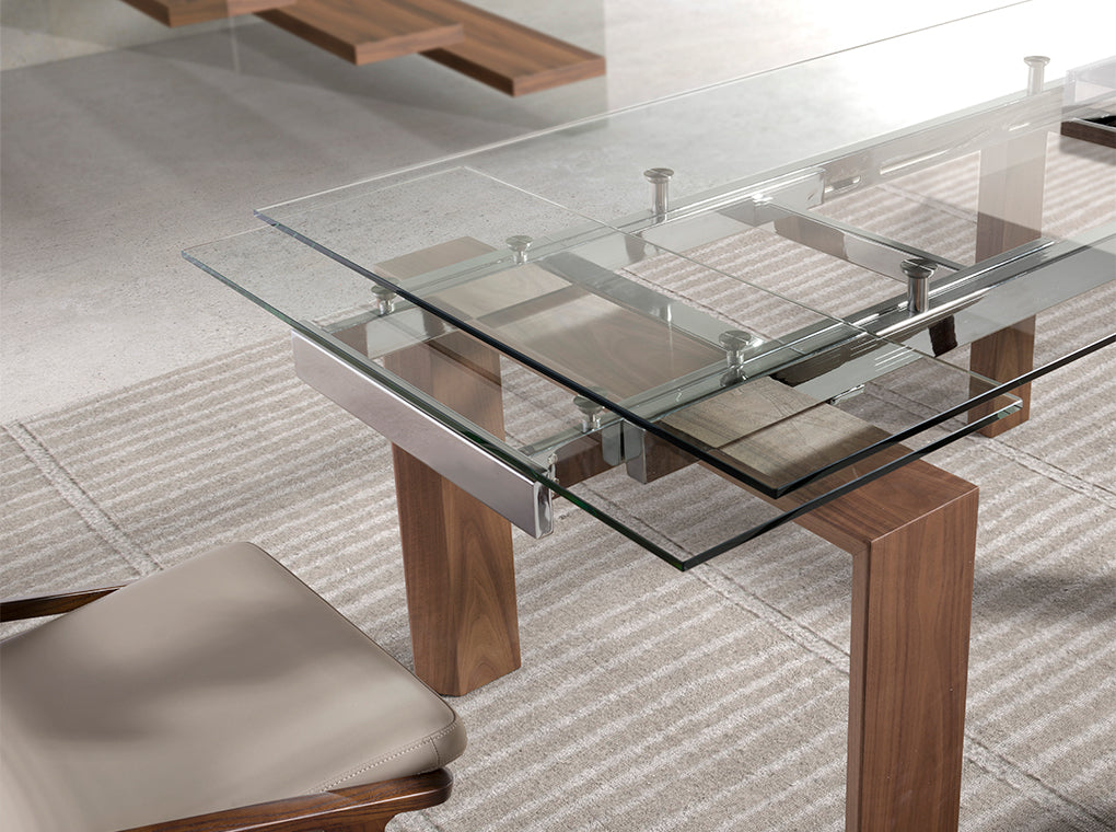 Masa de Dining din Sticla Extensibila cu Picioare din Nuc Angel Cerda