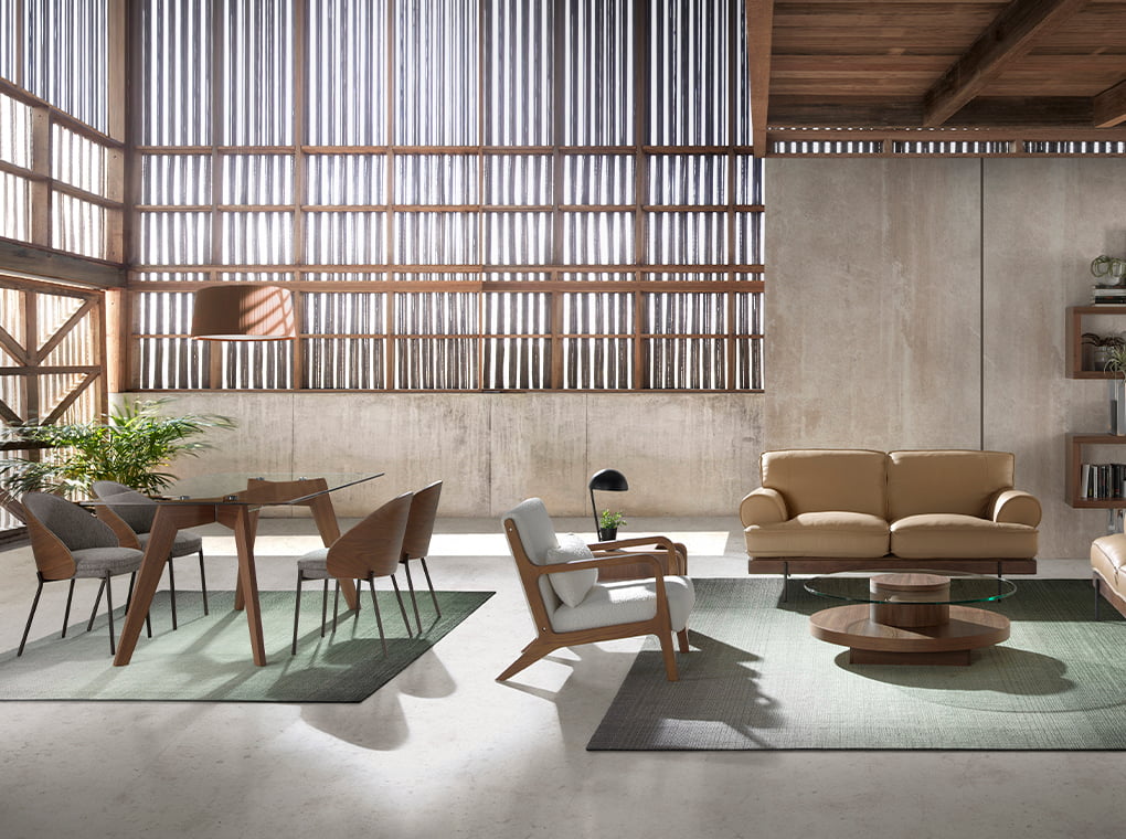 Masa de Dining Rectangulara din Sticla cu Picioare din Nuc Angel Cerda