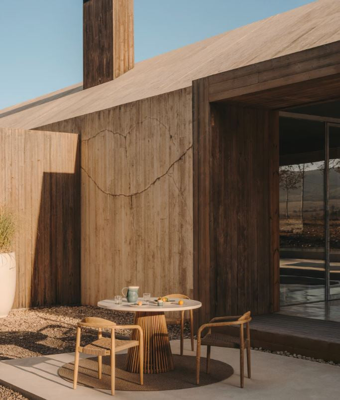 Masa Alcaufar combina naturaletea lemnului masiv de tec cu urbanismul cimentului, creand un design perfect pentru spatiile dvs. de interior si exterior. O piesa unica care adauga personalitate mediilor dvs.