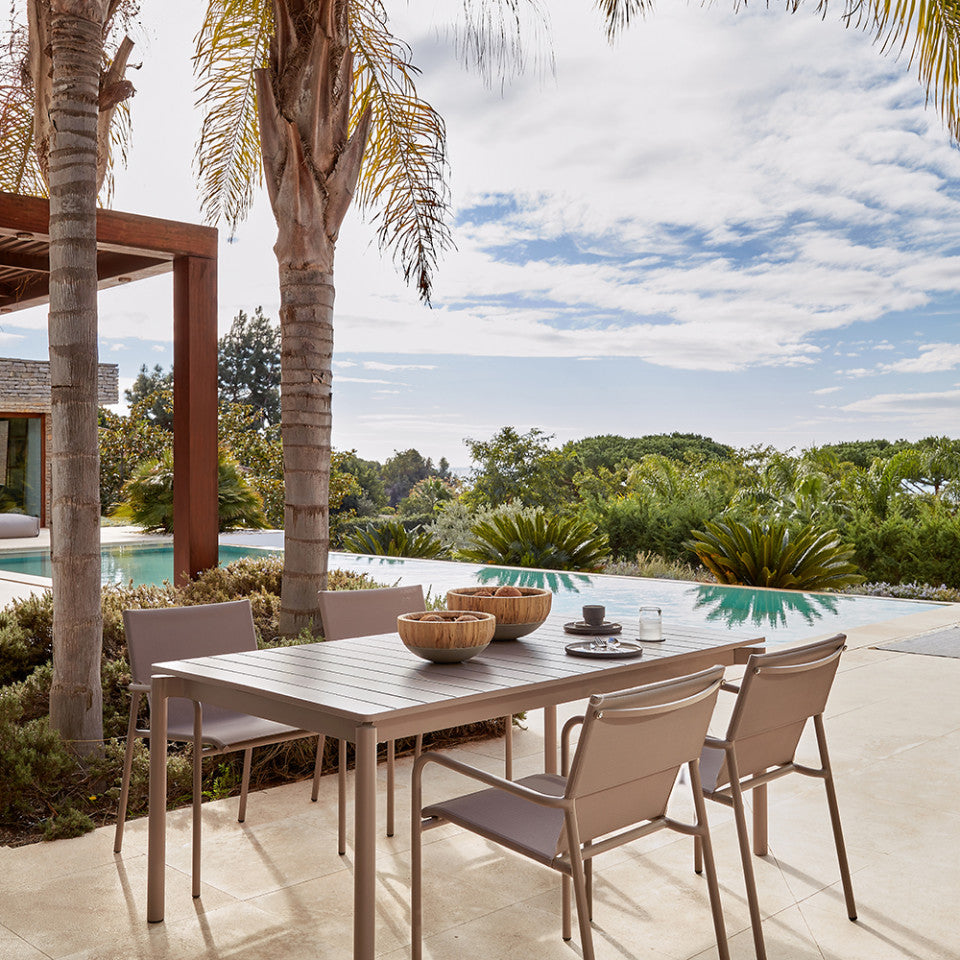 Masa dining exterior extensibila maro din metal 90x140(200) cm Zaltana Kave Home