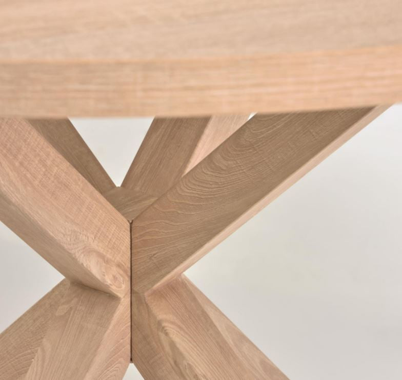 Cu un blat de 119 cm, poti folosi masa fara griji, datorita suprafetei sale mari. In plus, produsul se sprijina pe o structura in care picioarele par sa se impleteasca, un design care ofera si stabilitate.