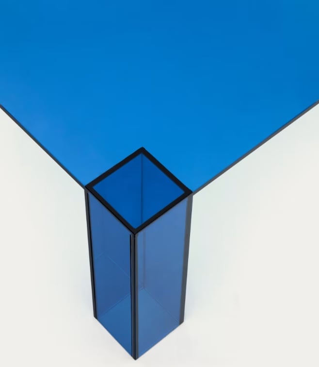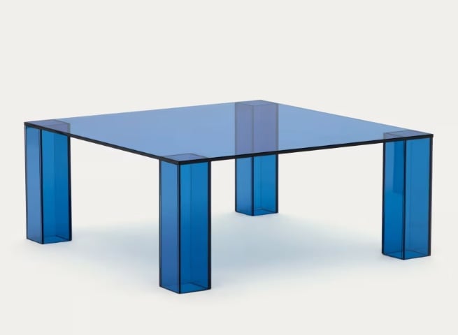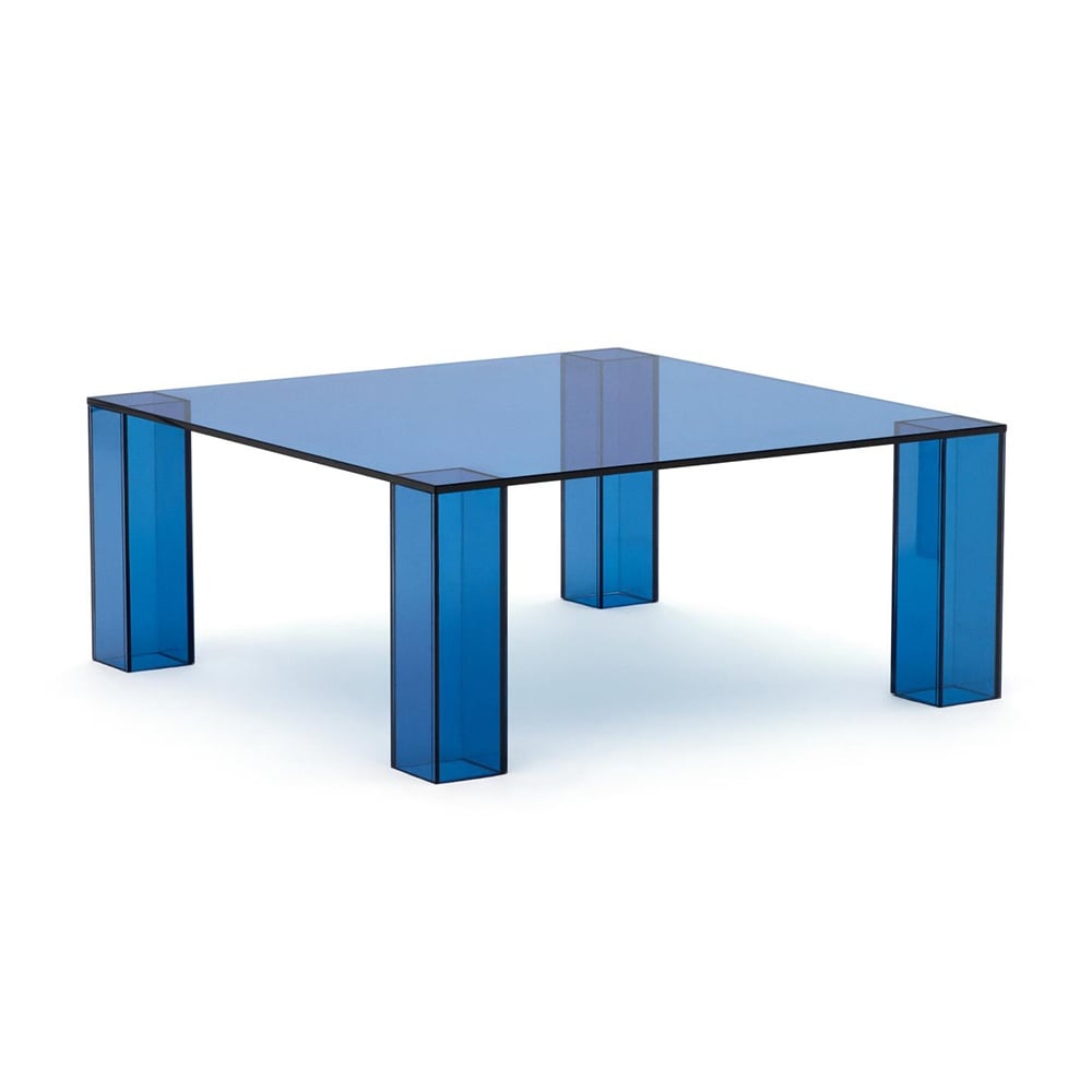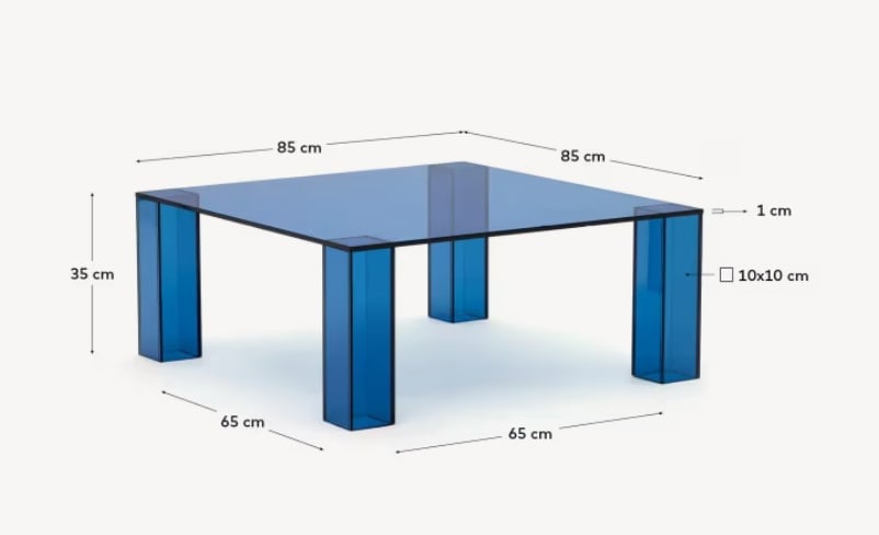 Masa laterala albastra din sticla 85x85 cm Adularia Kave Home