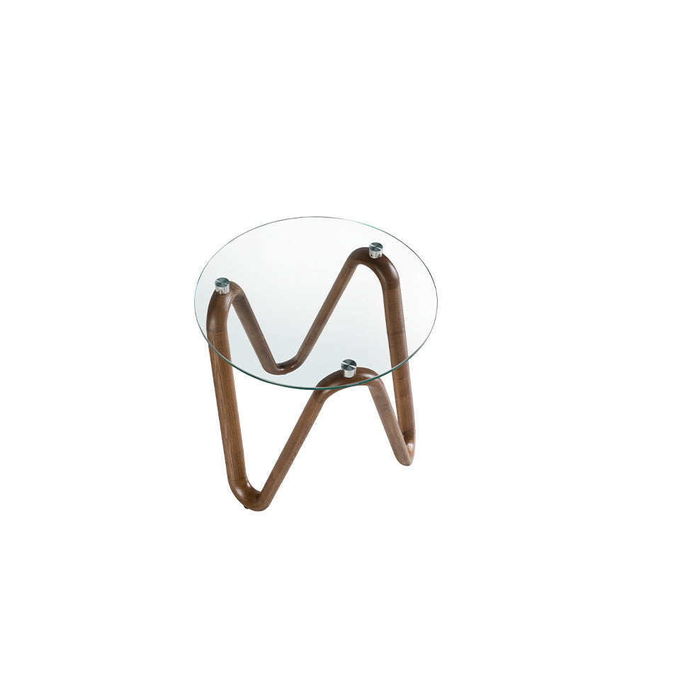 Masa Laterala Rotunda din Sticla Temperata si Nuc Angel Cerda