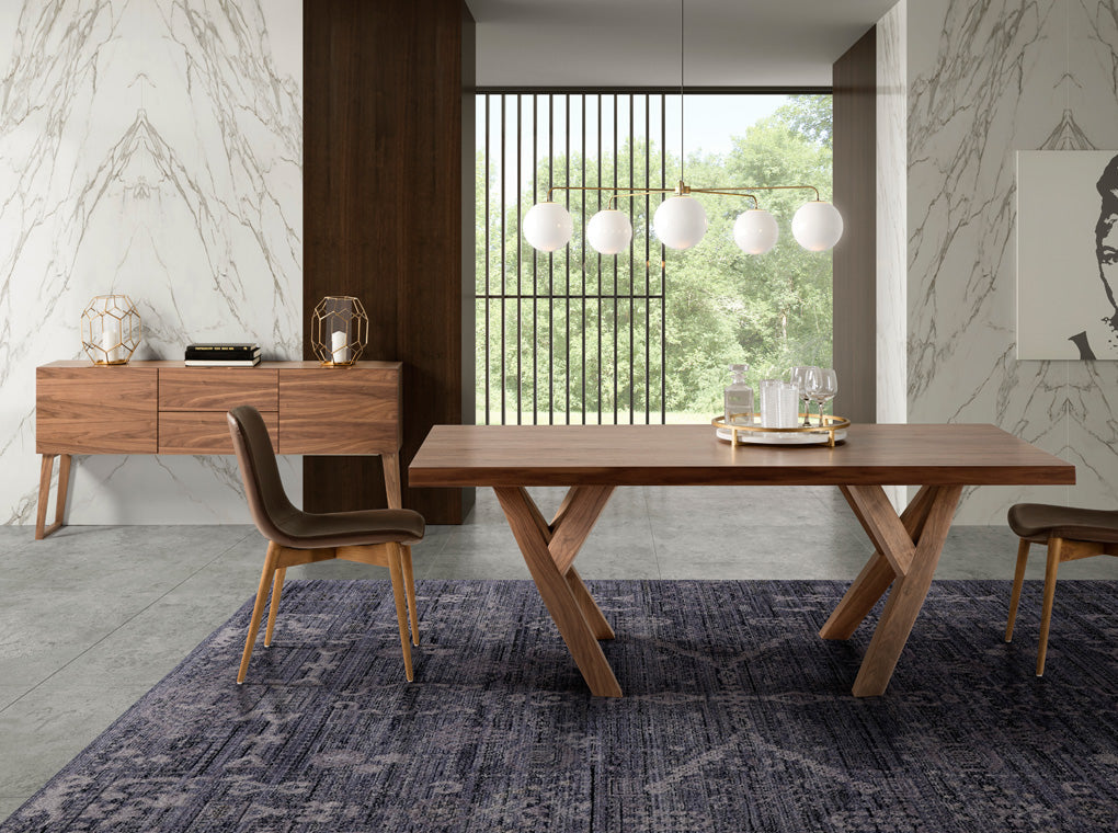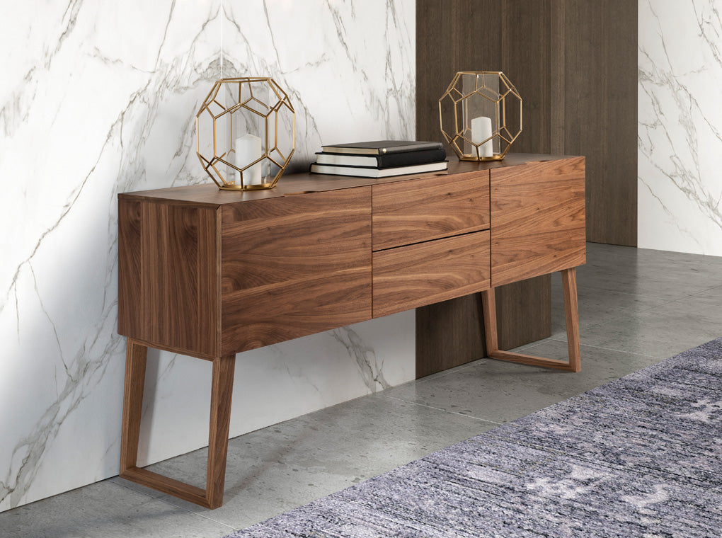 Bufetul din lemn de nuc este o piesa de mobilier moderna si eleganta, perfecta pentru a fi integrata in orice camera. Realizat din lemn de nuc furniruit natural, acesta ofera un touch de caldura si stil in sufragerie sau in sala de mese. Cu spatiu mare de depozitare, doua usi si doua sertare centrale cu sistem de deschidere prin apasare si inchidere cu inchidere moale, si rafturi interioare asortate, acest bufet este ideal pentru a pastra totul in ordine. Calitatea sa superioara garanteaza un mobilier durabil si functional, iar designul sau original ii confera un aspect modern si luminos.