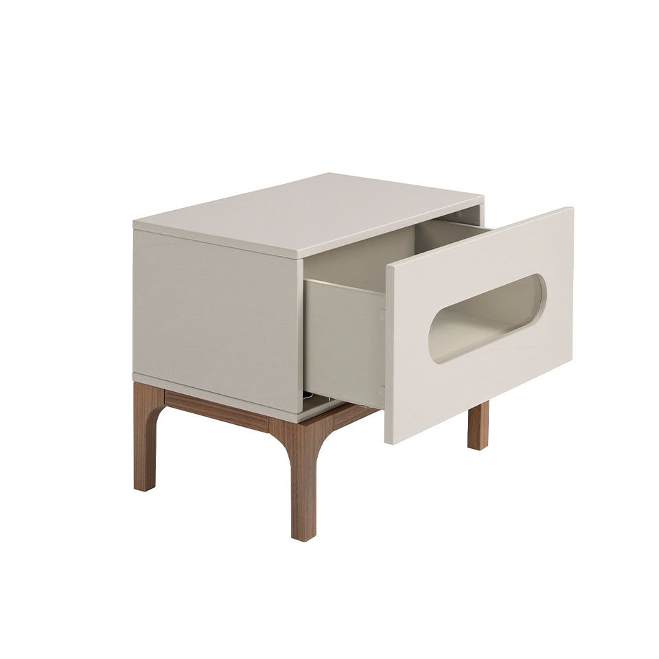 Noptiera moderna din lemn MDF gri si nuc este o piesa de mobilier unica si versatila pentru dormitorul dvs. Iluminarea interioara si sertarul cu sistem de inchidere moale ofera un spatiu mare de depozitare si o atmosfera calda si relaxata. Designul sau liniar si modern, finisajul lacuit si picioarele din lemn de nuc fac din aceasta masa de noapte alegerea perfecta pentru cei care cauta mobilier durabil si de inalta calitate. Catalogul nostru ofera o selectie larga de mobilier de dormitor pentru a decora casa cu piese realizate din materiale nobile de cea mai inalta calitate.
