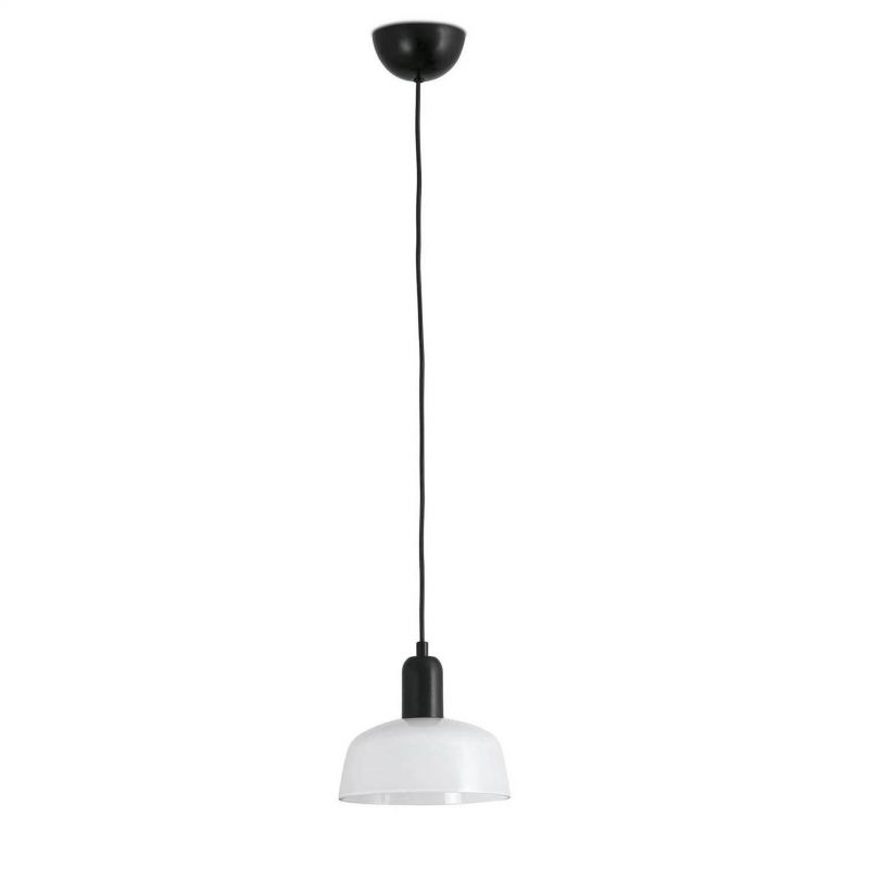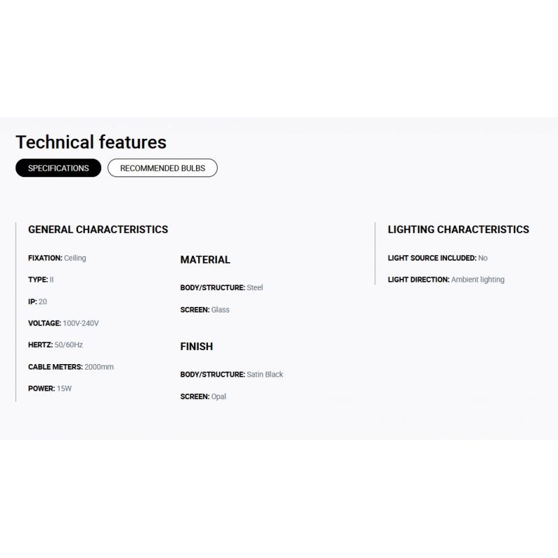 Materiale | structura metal negru satin, abajur sticla alb opal |