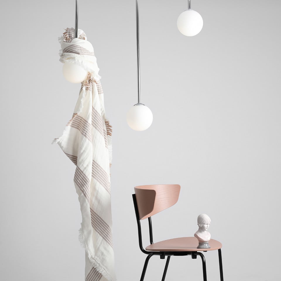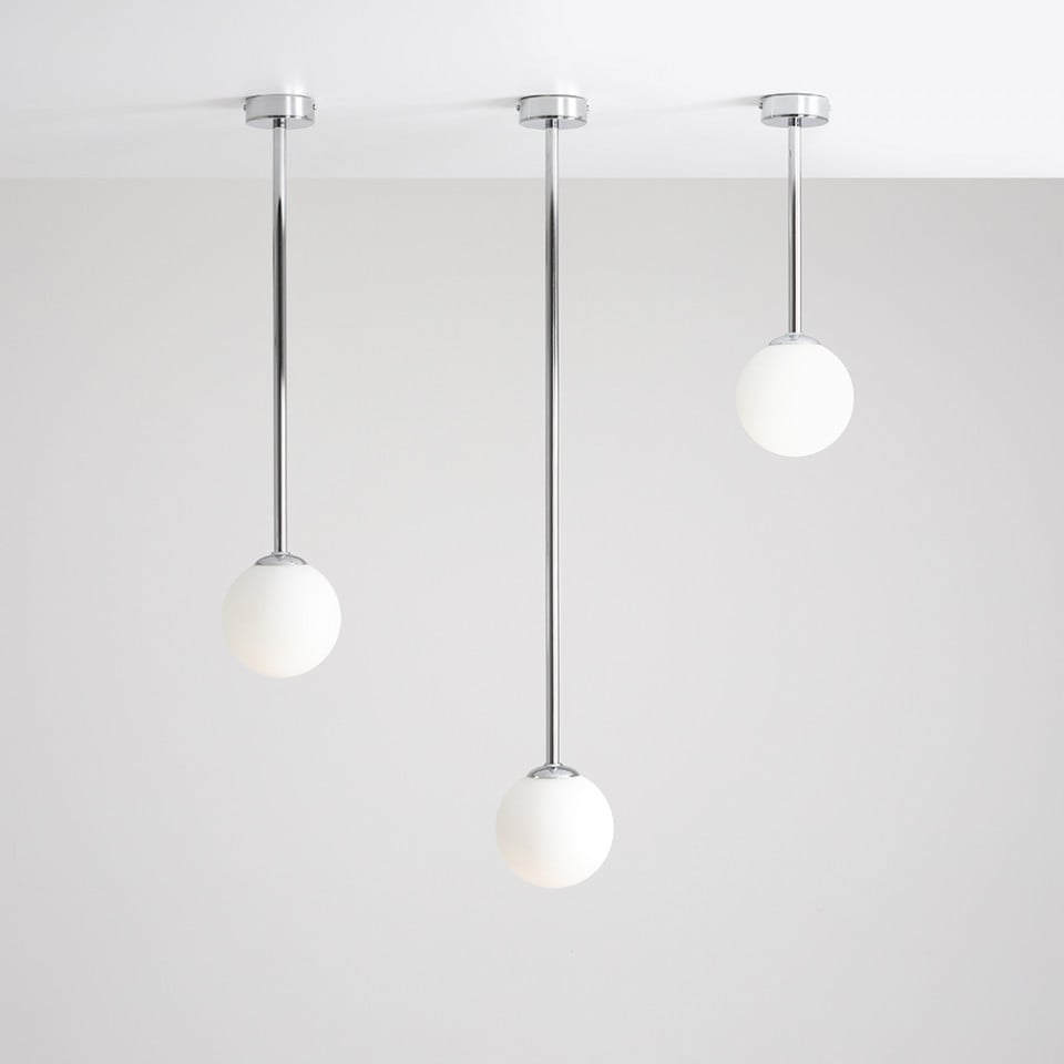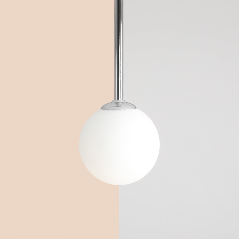 Cea mai scurta plafoniera din colectia Pinne este o lampa de tavan minimalista, finisata cu un abajur sferic din sticla, cu un diametru de 14 cm. A fost creata ca urmare a cererii clientilor pentru o buna iluminare a spatiilor mici. Aceasta plafoniera moderna arata foarte bine in vecinatatea unor plafoniere mai lungi din aceeasi serie. Finisajul cromat ii confera lampii o nota de farmec.