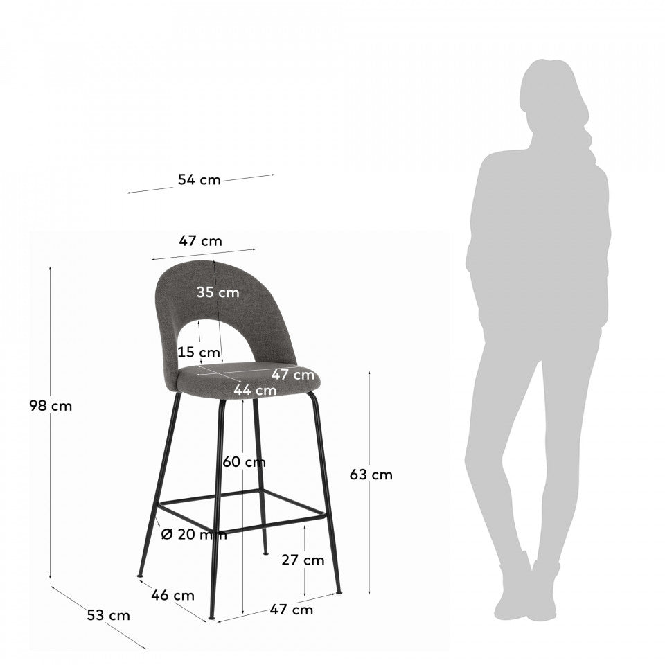 Scaun bar gri inchis din textil Mahalia Kave Home