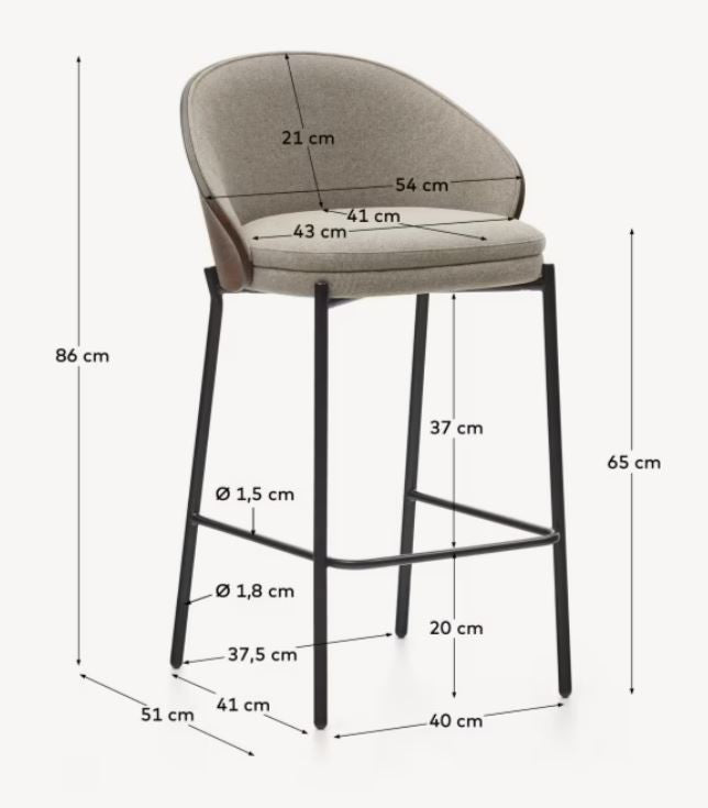 Scaun bar maro deschis/maro din textil Eamy Low Kave Home