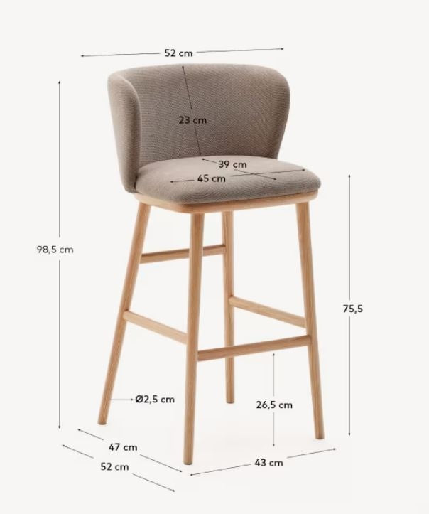 Scaun bar maro din textil Ciselia High Chenille Kave Home