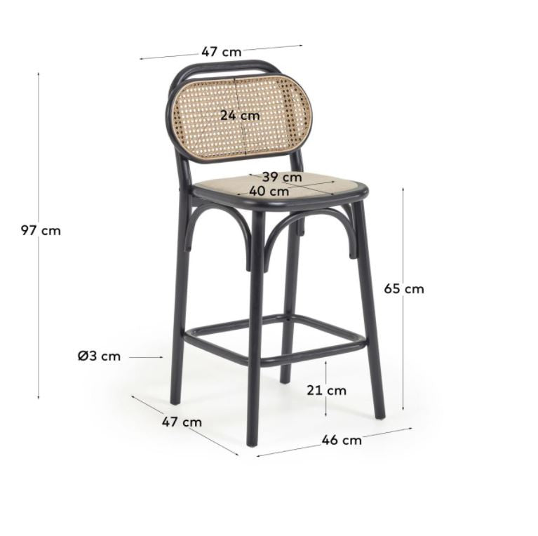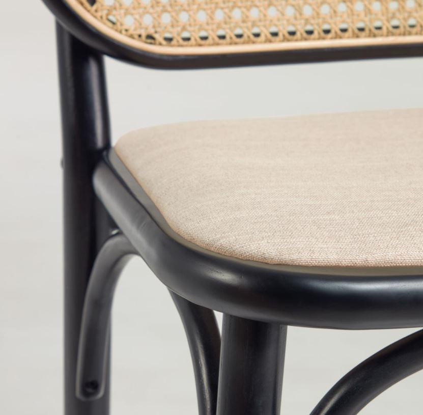 Doriane este un scaun de bar realizat manual din ulm solid din surse durabile, ratan tesut manual si tapiterie hidrofuga cu efect de in. Pune-l langa insula ta din bucatarie sau barul de mic dejun pentru a crea un aspect la moda si natural datorita acestui design clasic actualizat.