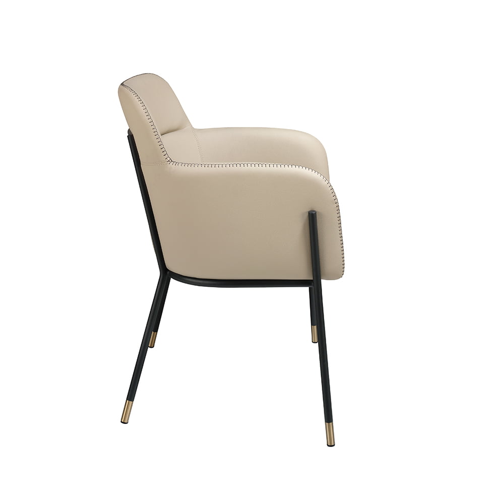 Scaunul de dining tapitat in eco-piele si cu picioare din otel negru este un must-have pentru orice camera de dining moderna. Designul sau original si elegant, cu picioare din otel epoxidic negru si detalii din otel auriu, ii confera un stil avant-garde si o eleganta aparte. Fabricat din materiale de cea mai inalta calitate, acest scaun este durabil si functional. Dimensiunea sa si umplutura din spuma poliuretanica de 25kg/m3 iti vor oferi confortul maxim, fara a lasa deoparte cea mai mare tendinta.