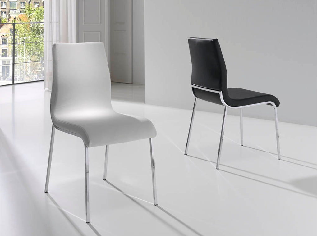 Scaunul de masa tapitat cu piele ecologica neagra este un produs modern si elegant, perfect pentru a adauga un plus de stil in camera de mese. Cu o structura de picior din otel inoxidabil cromat si un spatar si scaun din spuma poliuretanica, acest scaun ofera nu doar un aspect unic, ci si confort maxim. Este versatil si multifunctional, potrivindu-se in orice tip de camera de zi, sala de mese sau bucatarie. Calitatea sa este garantata de cele mai bune materiale de calitate, asigurand durabilitate si functionalitate.