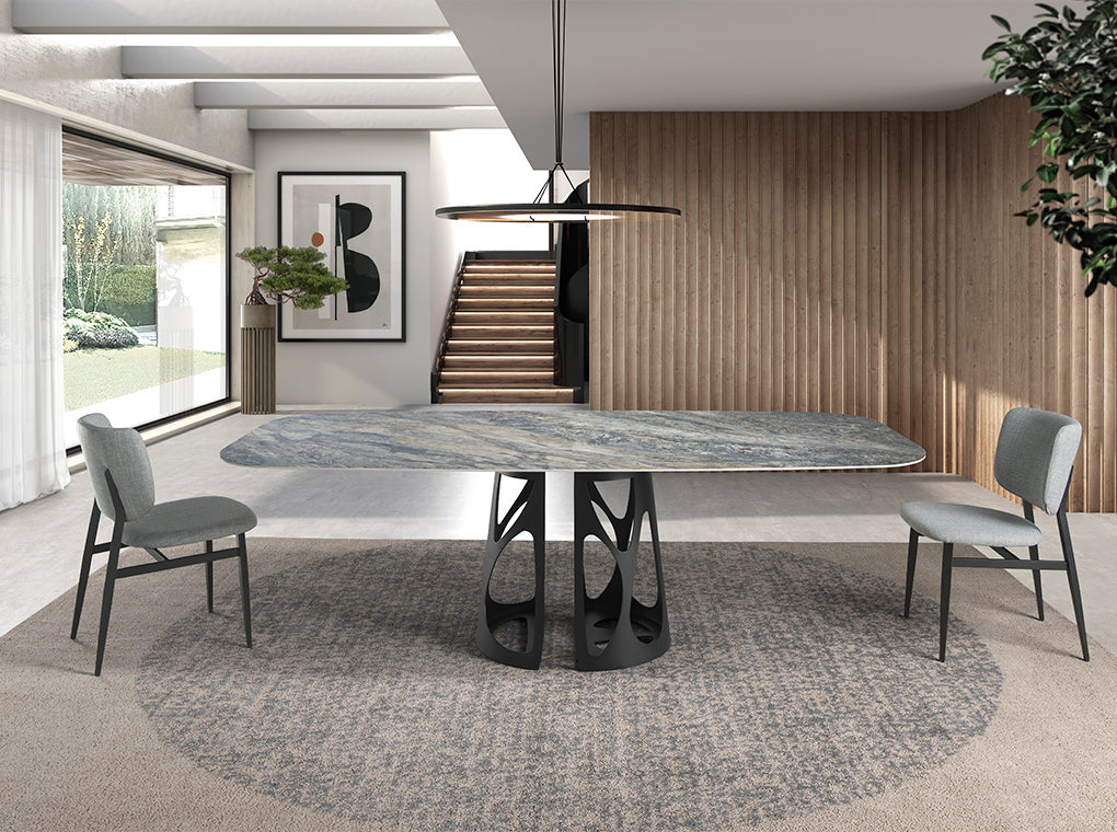 Scaunul din material gri deschis este un must-have pentru orice bucatarie sau sala de mese. Designul modern si stilul avangardist il fac sa fie o piesa de mobilier unica si sofisticata. Picioarele sale din otel inoxidabil vopsit in negru ii ofera stabilitate si il fac sa se potriveasca cu orice masa de dining. Dimensiunea scaunului si umplutura sa din spuma poliuretanica de inalta calitate ii ofera confort maxim. Scaunele noastre de dining sunt realizate din cele mai bune materiale de calitate, garantand mobilier durabil si functional. Combinate cu alte tipuri de materiale, acestea sunt un element esential pentru a transforma orice spatiu intr-un mediu versatil si decorativ.