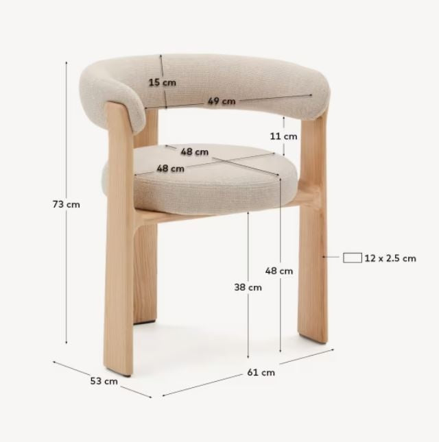 Material: 50% lemn de frasin, 24% textil (75% poliester, 25% poliester reciclat), 17% spuma poliuretanica, 6% otel, 3% placaj