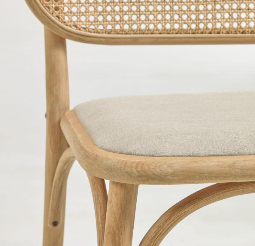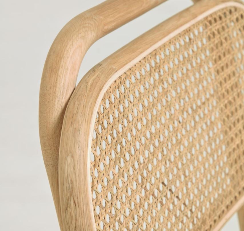 Doriane este un scaun lucrat manual, realizat din stejar masiv din surse durabile, ratan tesut manual si un scaun cu tapiterie hidrofuga cu efect de in. Ideal pentru a crea o sufragerie cool, contemporana, cu un aspect natural datorita designului sau clasic actualizat.