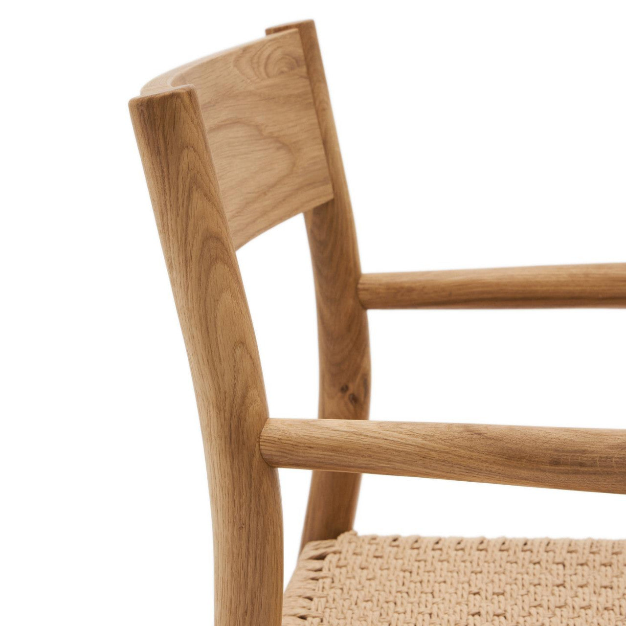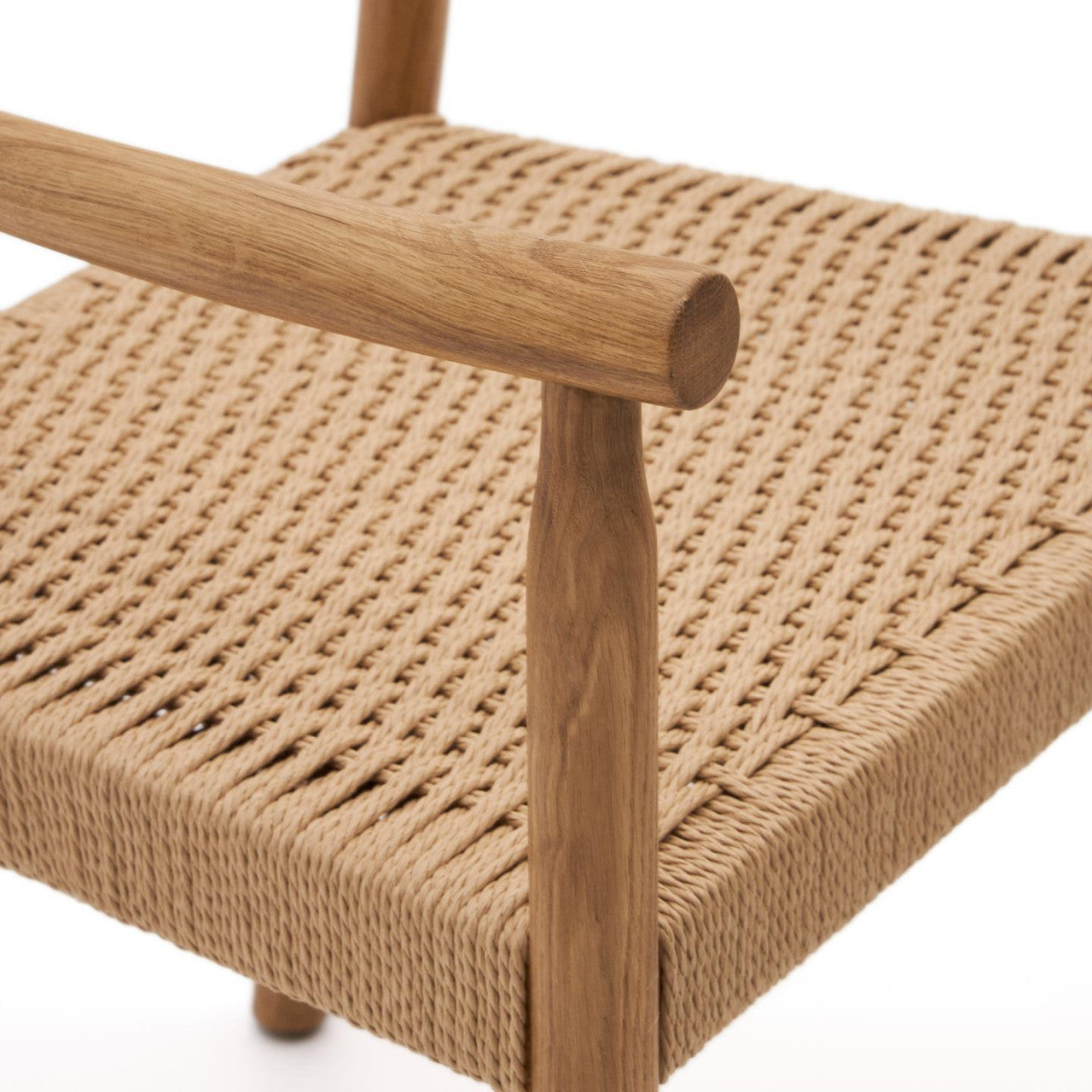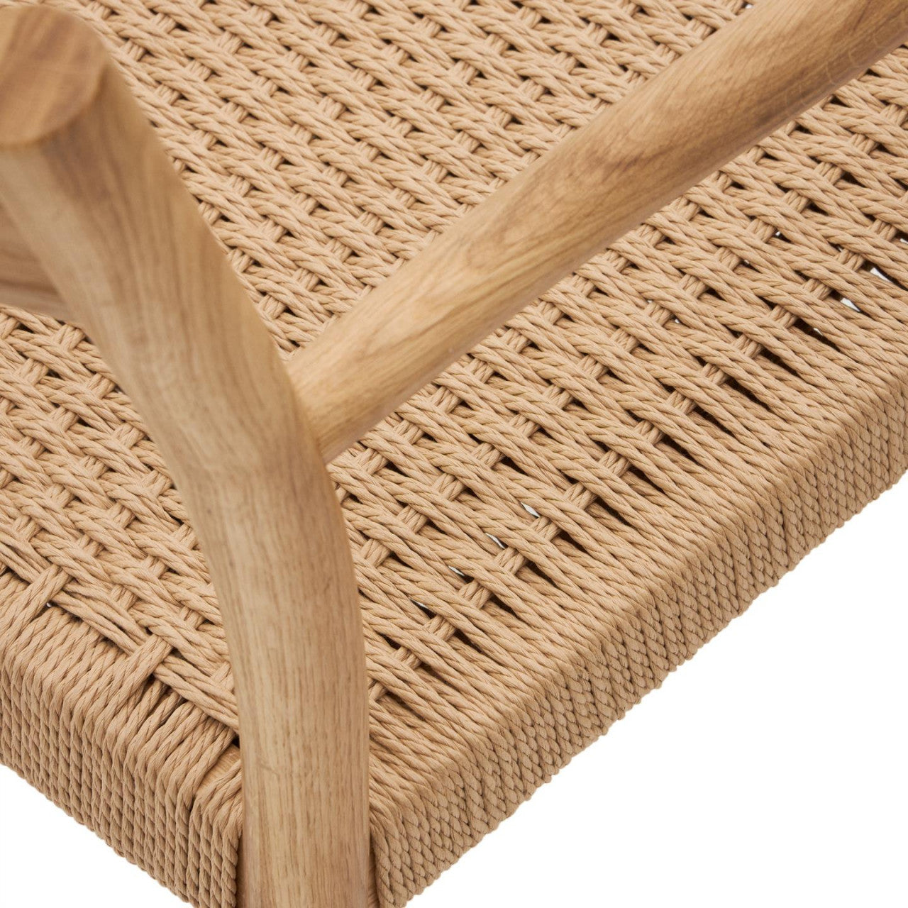 Scaunul Yalia este un design artizanal, cu o structura din lemn masiv de stejar si un scaun realizat din sfoara de hartie impletita manual. Are un finisaj ideal pentru a permite naturii sa intre in casa dvs.