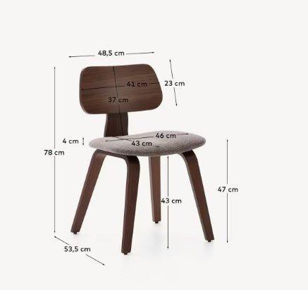 Acest scaun combina caldura si frumusetea naturala a furnirului de nuc cu robustetea lemnului de cauciuc, creand o piesa care se remarca atat prin estetica, cat si prin functionalitate. Designul sau atemporal si elegant evidentiaza granulatia unica a nucului, adaugand o nota sofisticata oricarui spatiu, in timp ce lemnul de cauciuc asigura o structura solida si durabila, perfecta pentru utilizarea zilnica.