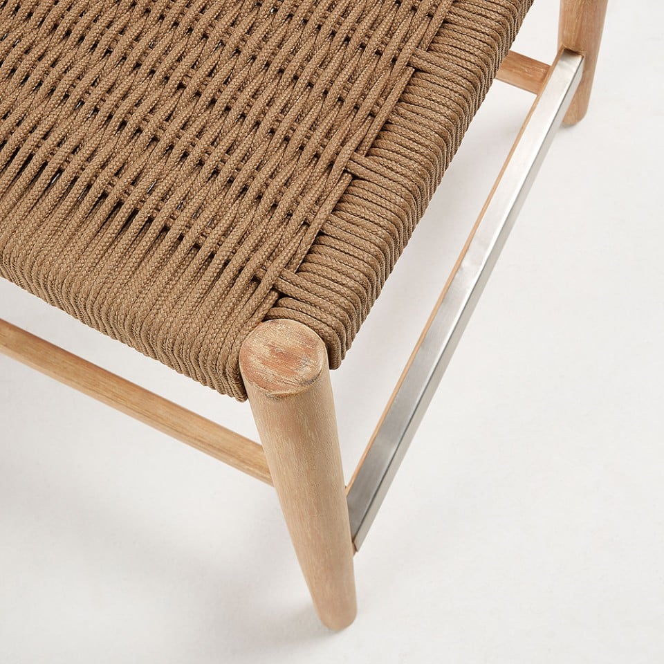 Scaun exterior ul Nina a fost proiectat cu o structura din lemn masiv de salcam realizat manual si un sezut impletit. Materialele sunt tratate pentru a le spori calitatile.