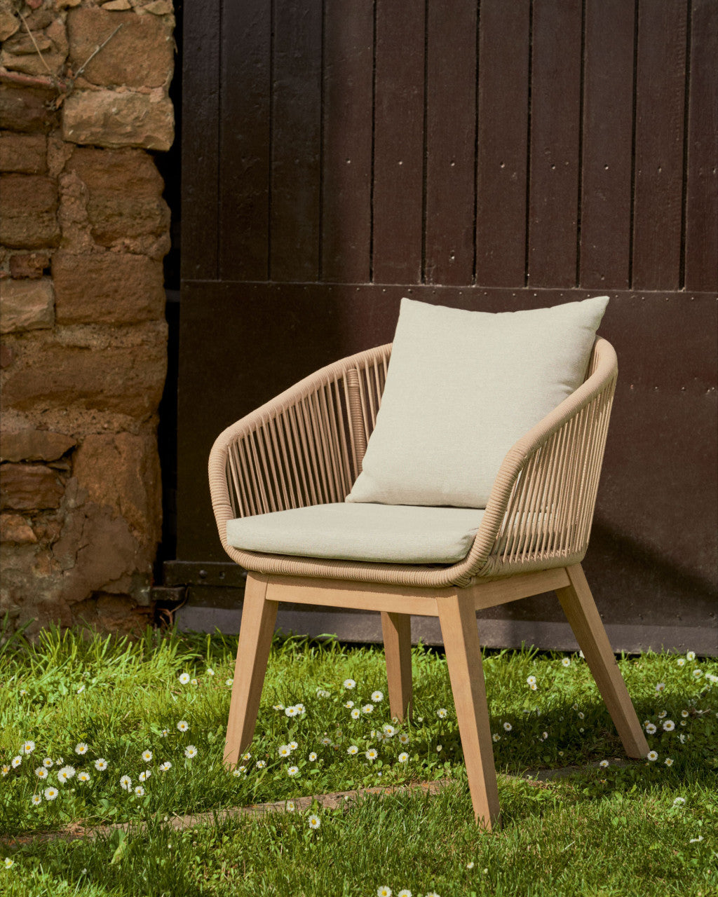 Scaun exterior bej din lemn Portalo Kave Home