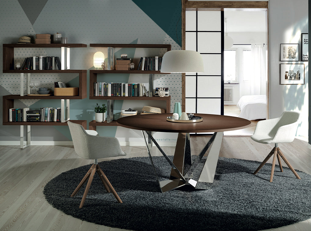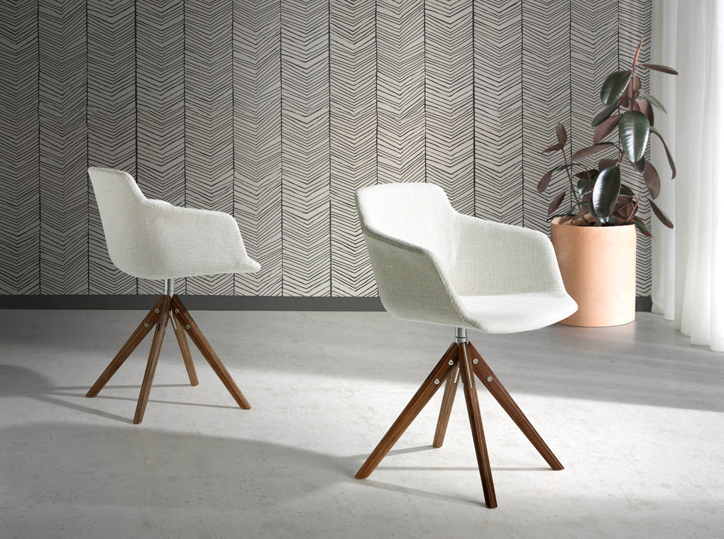 Scaun Pivotant Tesatura Bej si Lemn de Nuc Angel Cerda