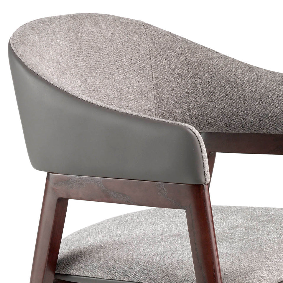 Scaunul de masa tapitat cu stofa si piele ecologica este un model modern si elegant, cu brate si spatar invelit in stofa gri si piele ecologica de culoare mink. Este un scaun versatil si functional, potrivindu-se in orice tip de living sau sufragerie. Realizat din materiale de cea mai inalta calitate, acest scaun este durabil si functional. Designul sau original si calitatea tapiseriei sale din stofa si piele ecologica ii ofera o atingere diferita si distinctiva. Dimensiunea scaunului si umplutura sa din spuma poliuretanica de 35 kg / m3, atat la scaun cat si la spatar, va vor permite sa aveti confort maxim.