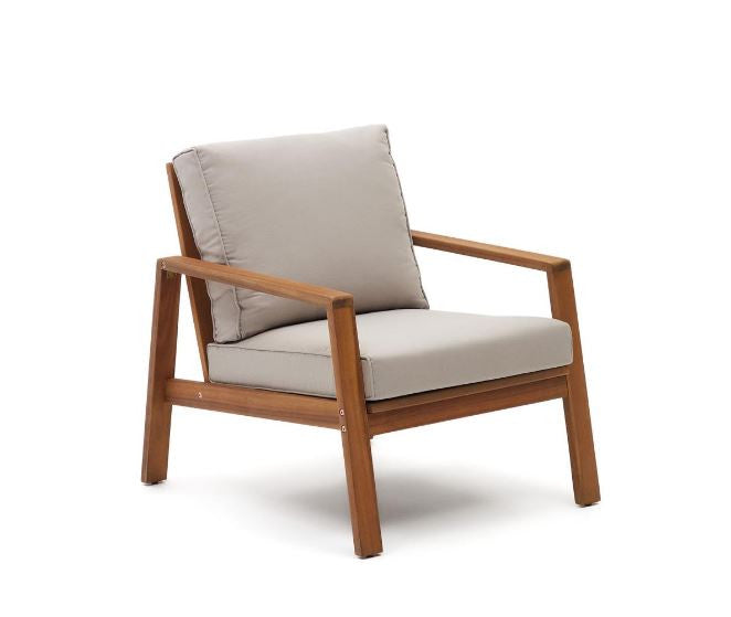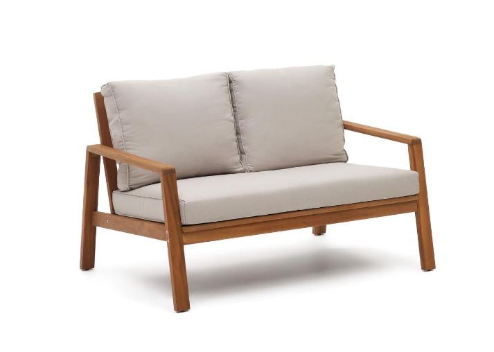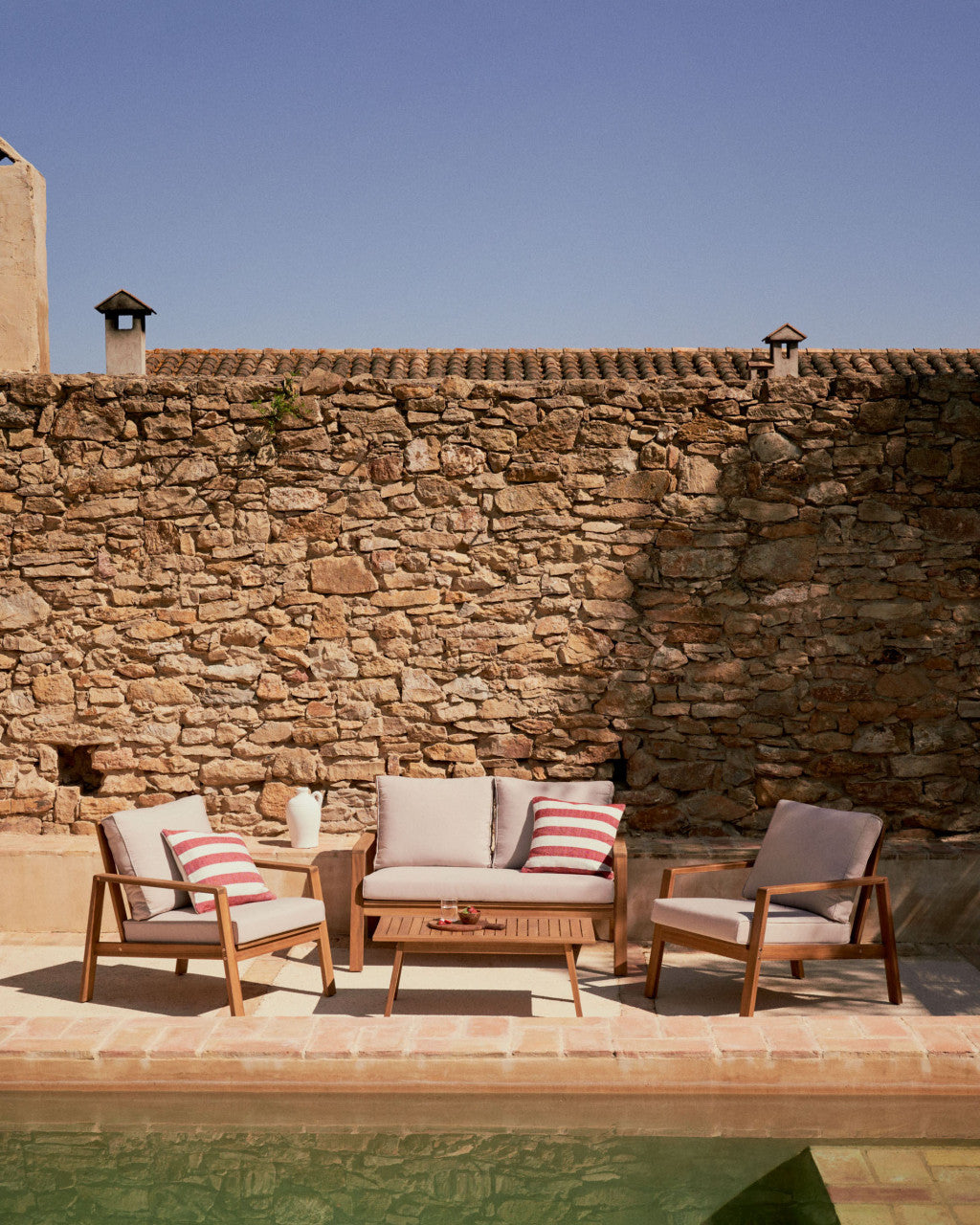 Set canapea, masa de cafea si 2 fotolii maro/gri din lemn Frares Kave Home